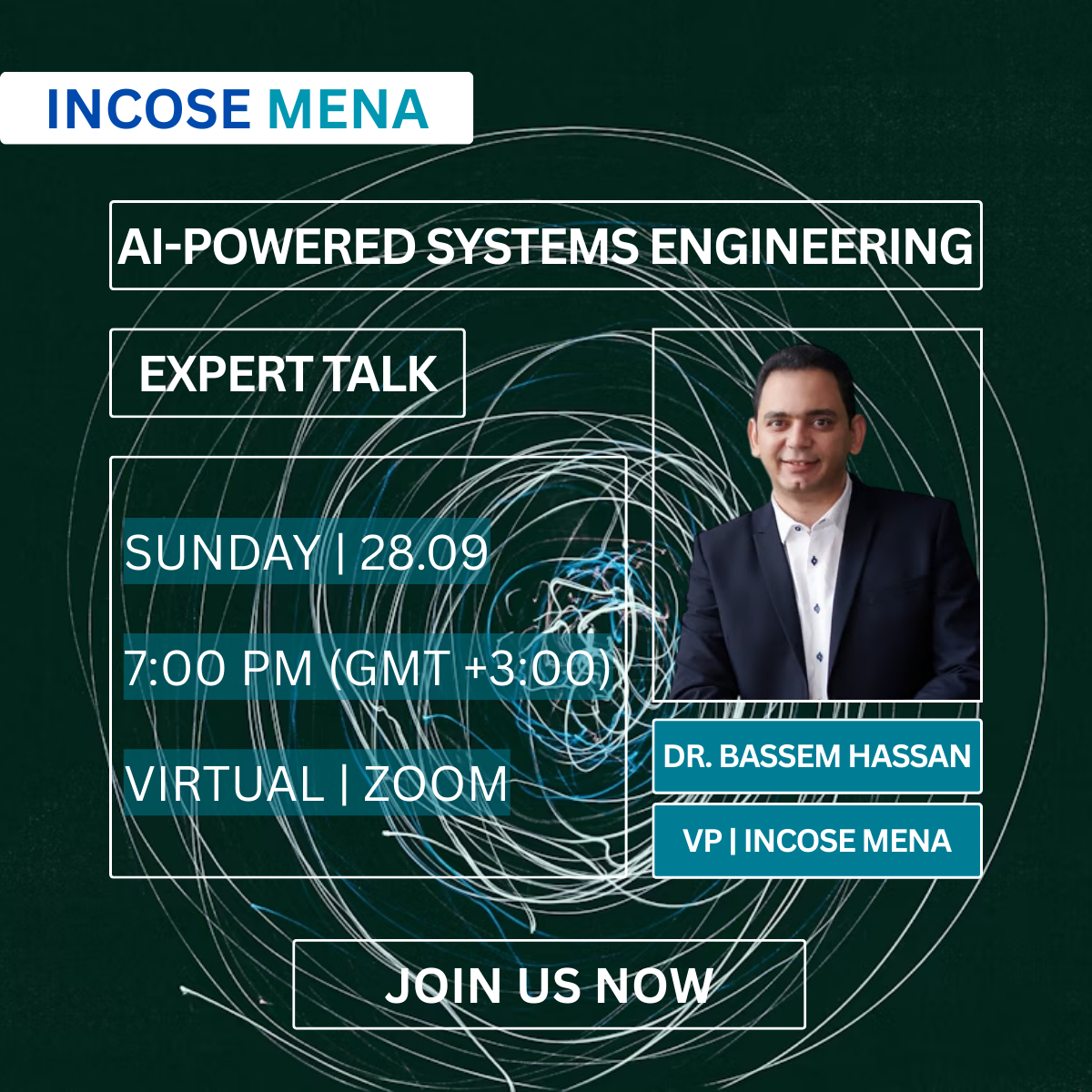 Discover the INCOSE MENA Expert Talk Series, where industry leaders and experts share insights, innovations, and best practices in systems engineering to inspire and share knowledge with our community.