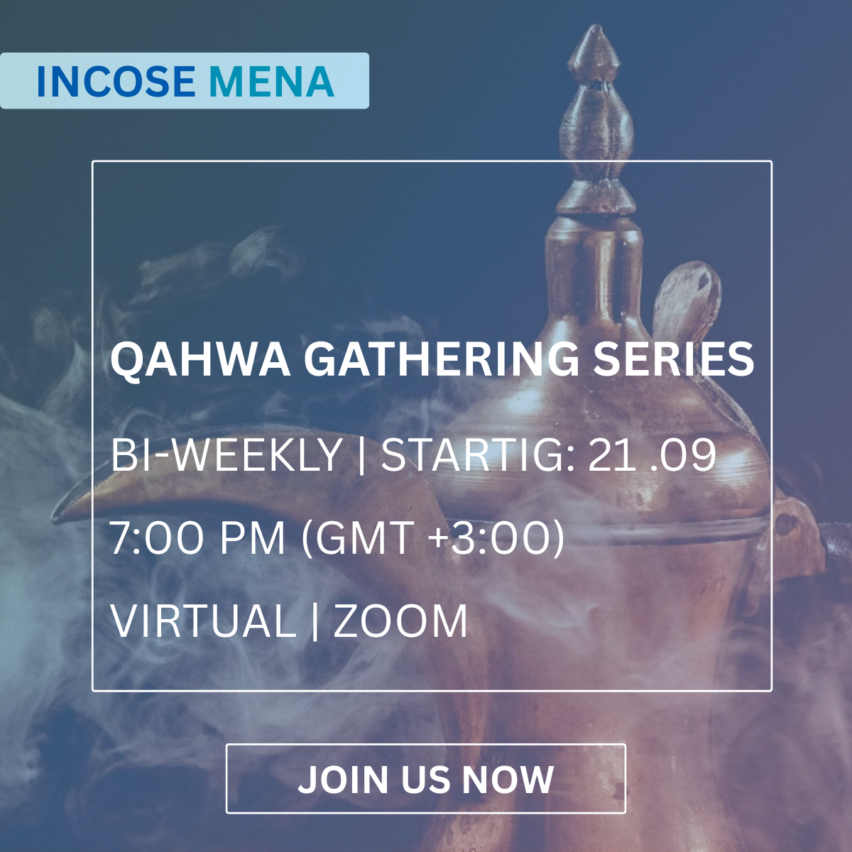 Join our Qahwa Gatherings, a one-hour opportunity to connect, exchange insights, and grow the regional systems engineering community. These informal yet impactful sessions are designed to foster networking and collaboration among professionals in the field.